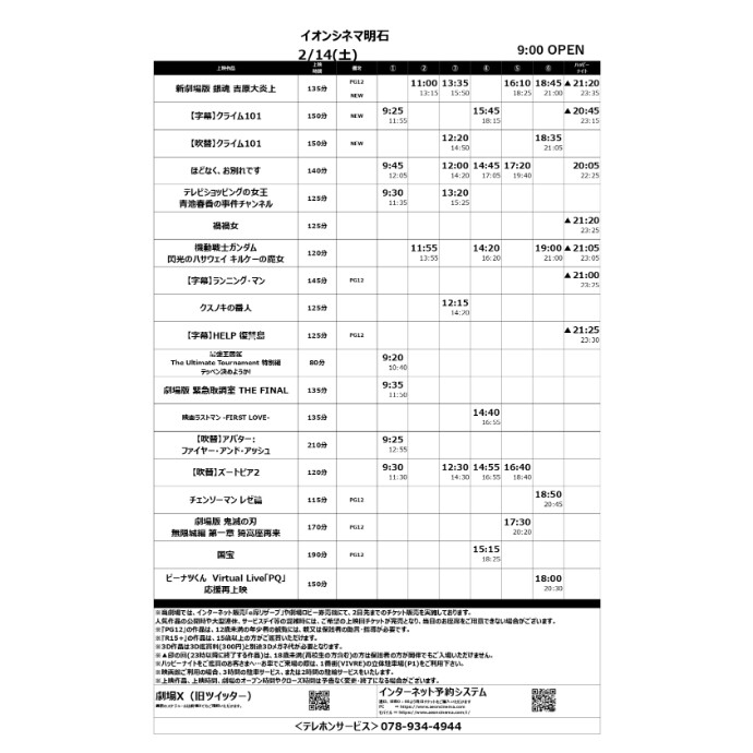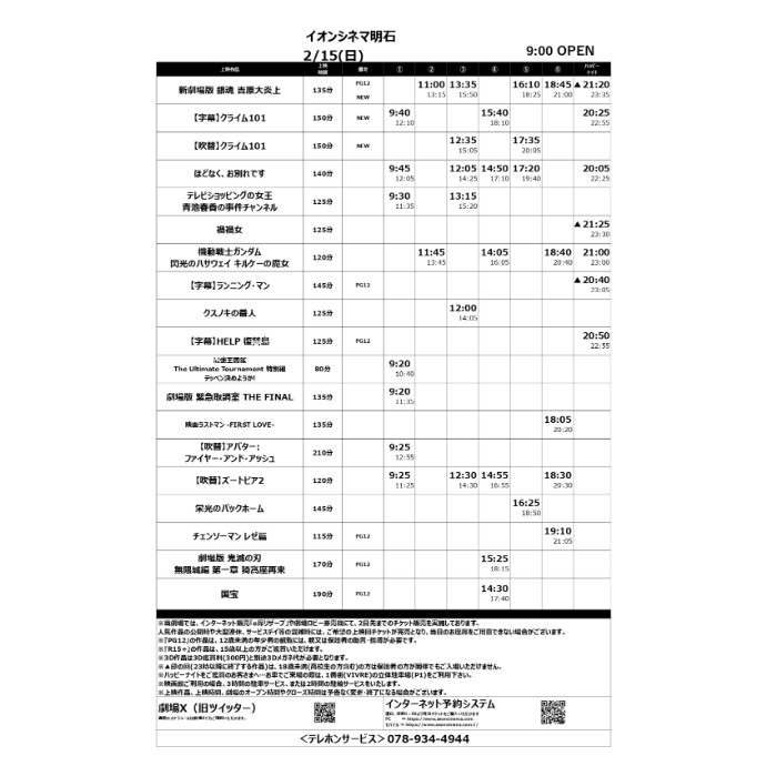 2/13(金)~2/19(木)のスケジュール 新規公開作品 ・銀魂 吉原大炎上 ・クライム101 字幕/吹替